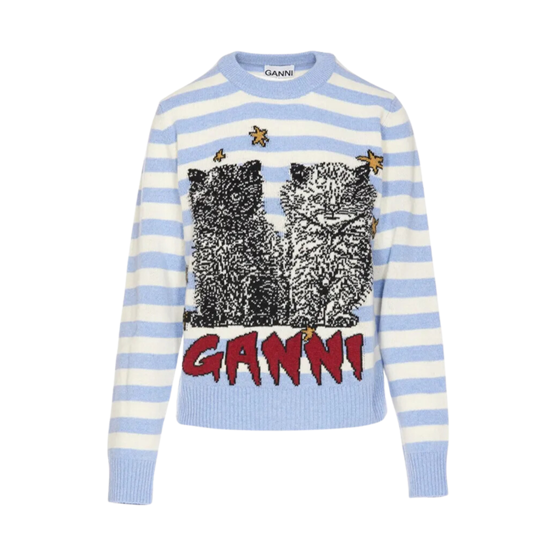 (W) 가니 스트라이프 그래픽 캣 점퍼 일루젼 블루