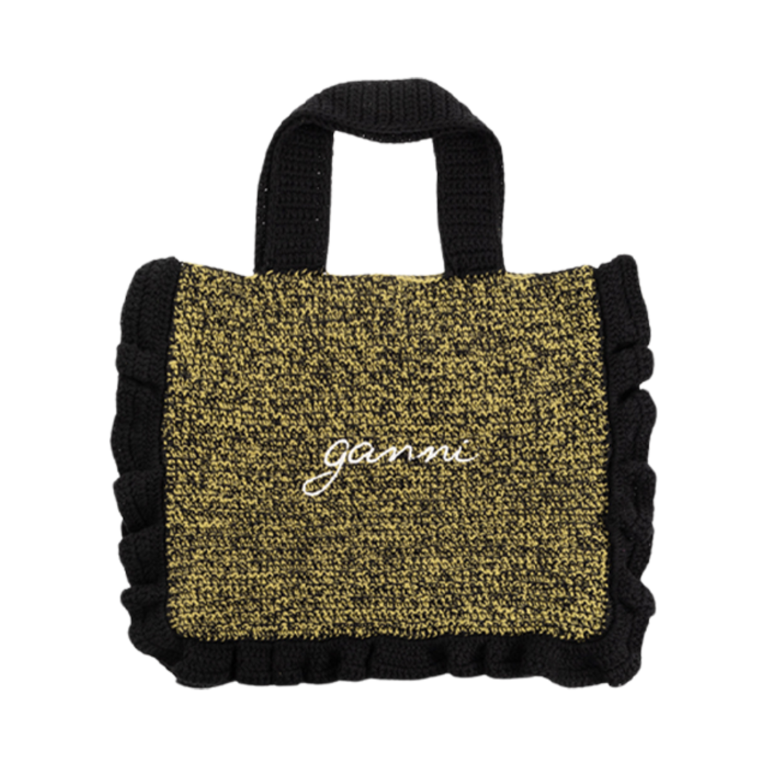 가니 크로쉐 프릴 토트 솔리드 백 골든 키위