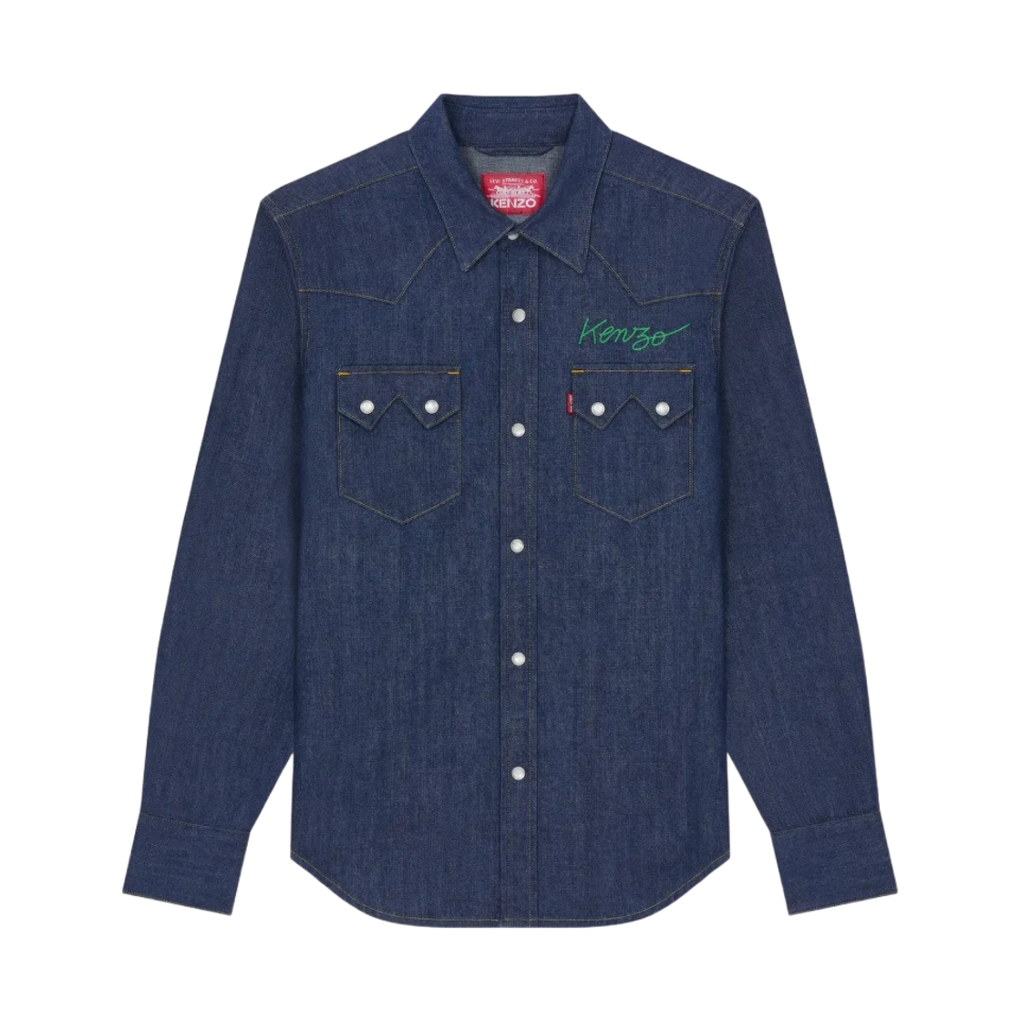 겐조 x 리바이스 데님 젠더리스 카우보이 셔츠 린스 블루 데님
