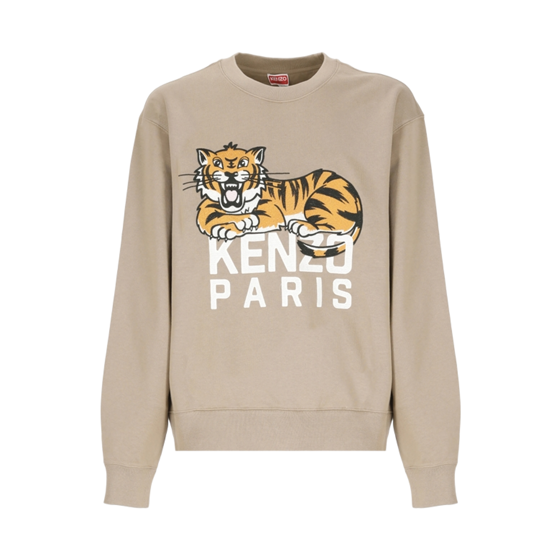 겐조 해피 타이거 자수 코튼 스웨트셔츠 베이지