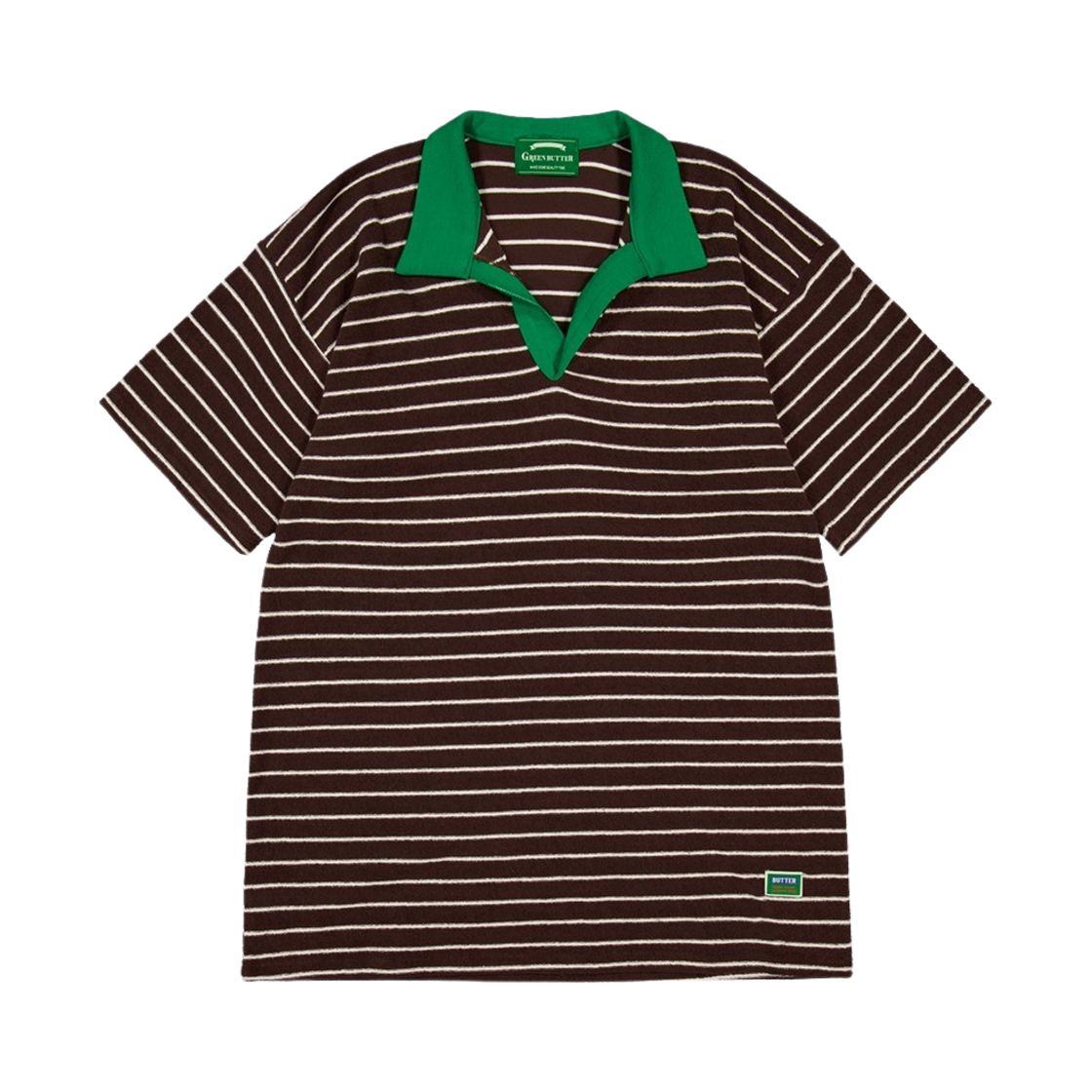 그린버터 우먼 테리 스트라이프 카라 드레스 브라운/그린