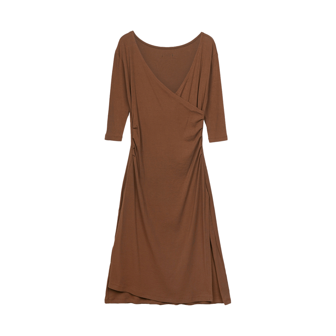 그린버터 셔링 랩 드레스 브라운
