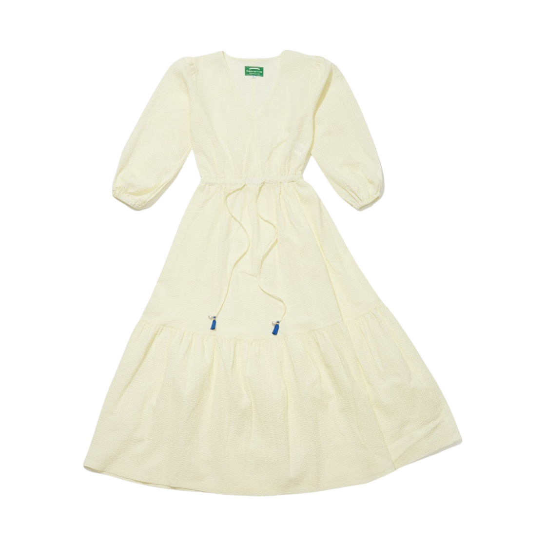 그린 버터 우먼 시어서커 펄 태슬 롱 원피스 라이트 옐로우