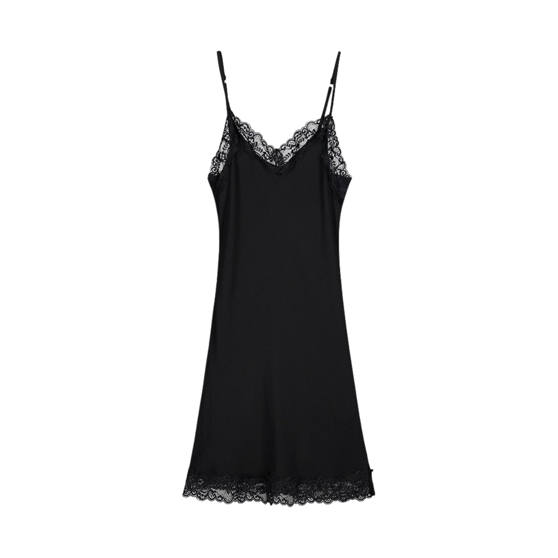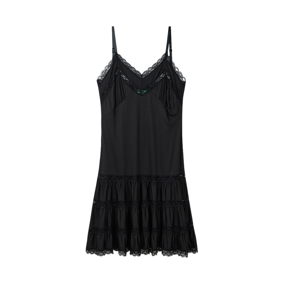 그린버터 실키 레이스 슬립 미니 드레스 블랙