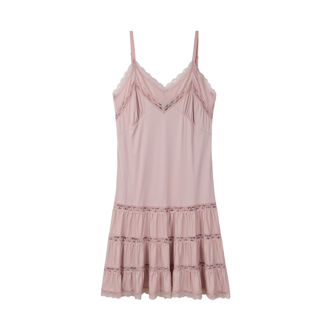 그린버터 실키 레이스 슬립 미니 드레스 핑크