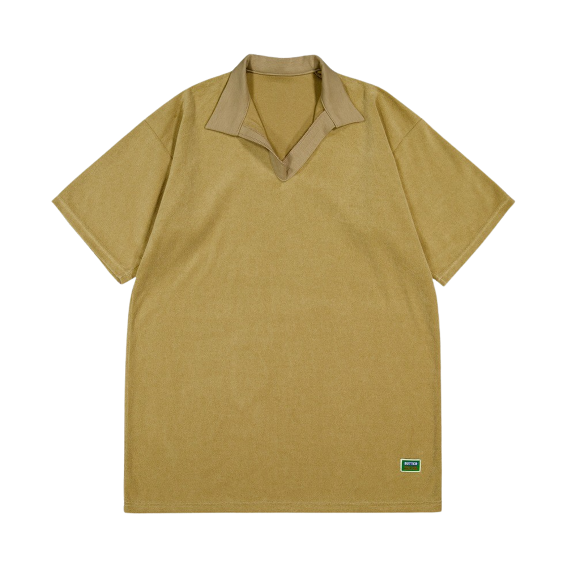 그린버터 우먼 테리 오픈 카라 드레스 카키 베이지
