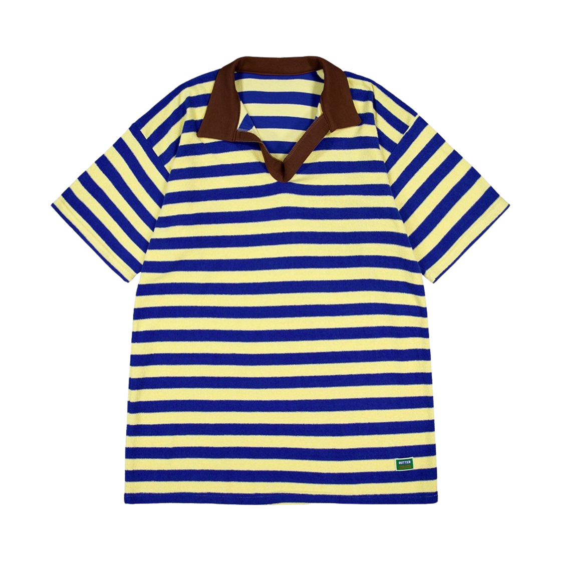 그린버터 우먼 테리 스트라이프 카라 드레스 블루/브라운