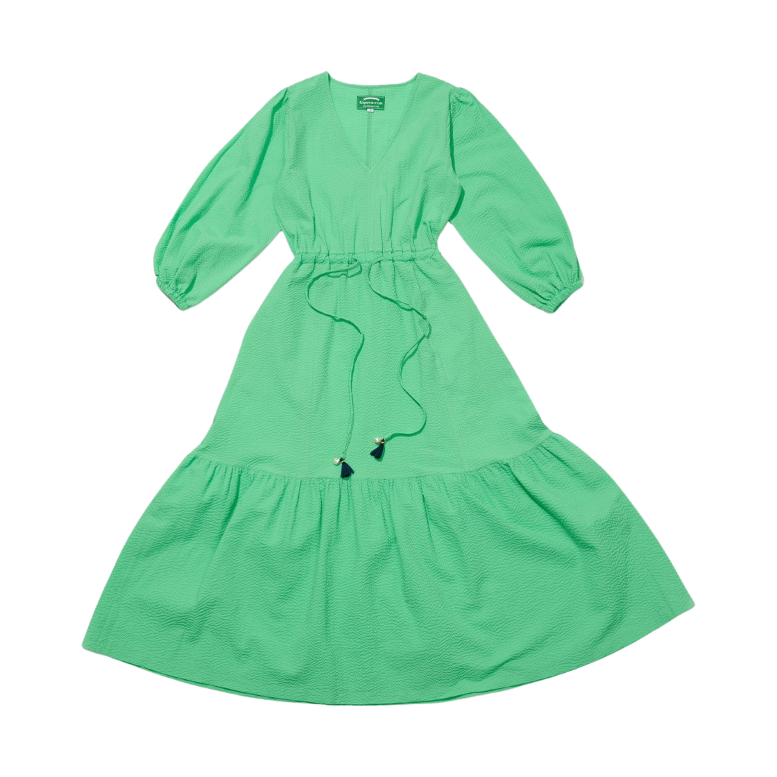 그린 버터 우먼 시어서커 펄 태슬 롱 원피스 옐로우 그린