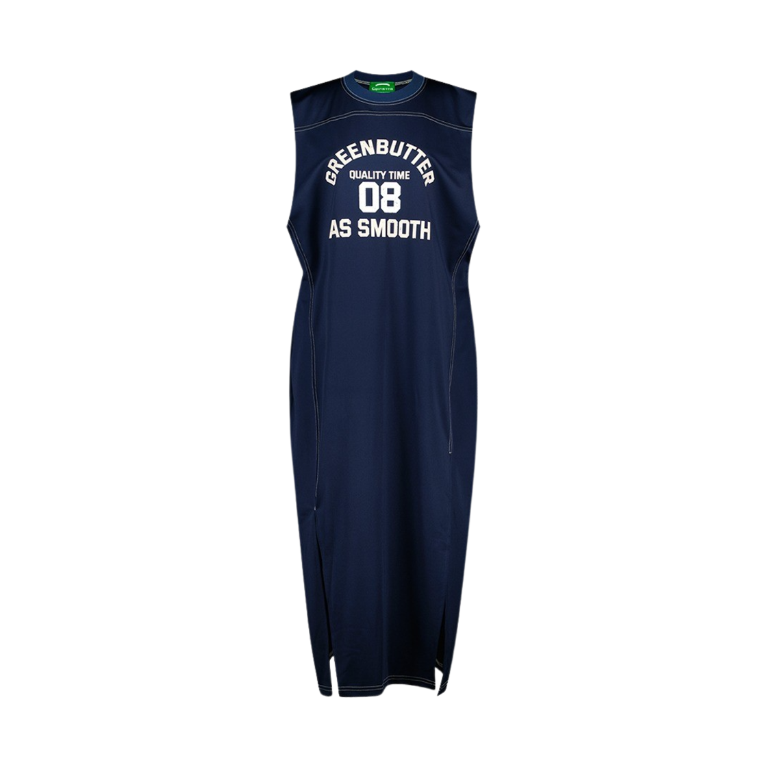 그린버터 우먼 컷팅 로고 져지 드레스 네이비