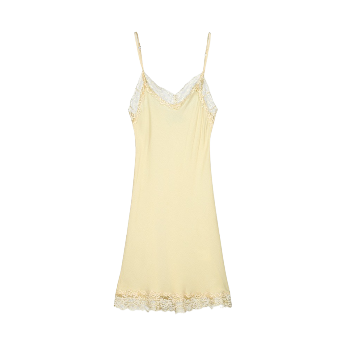 그린버터 우먼 빈티지 레이스 슬립 미니 드레스 옐로우