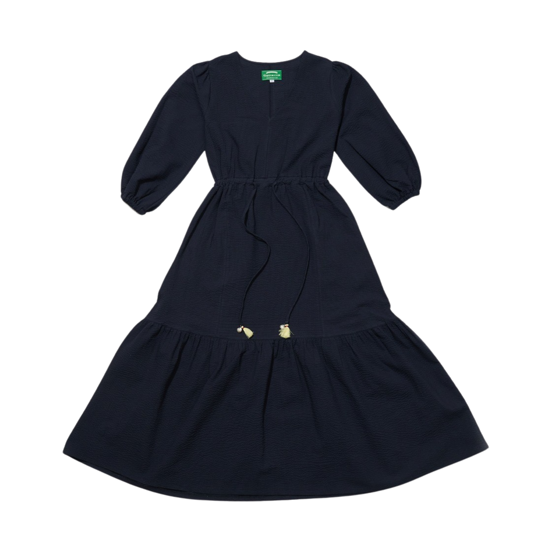 그린 버터 우먼 시어서커 펄 태슬 롱 원피스 네이비
