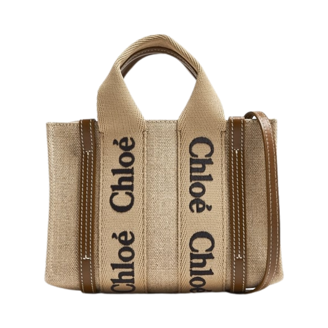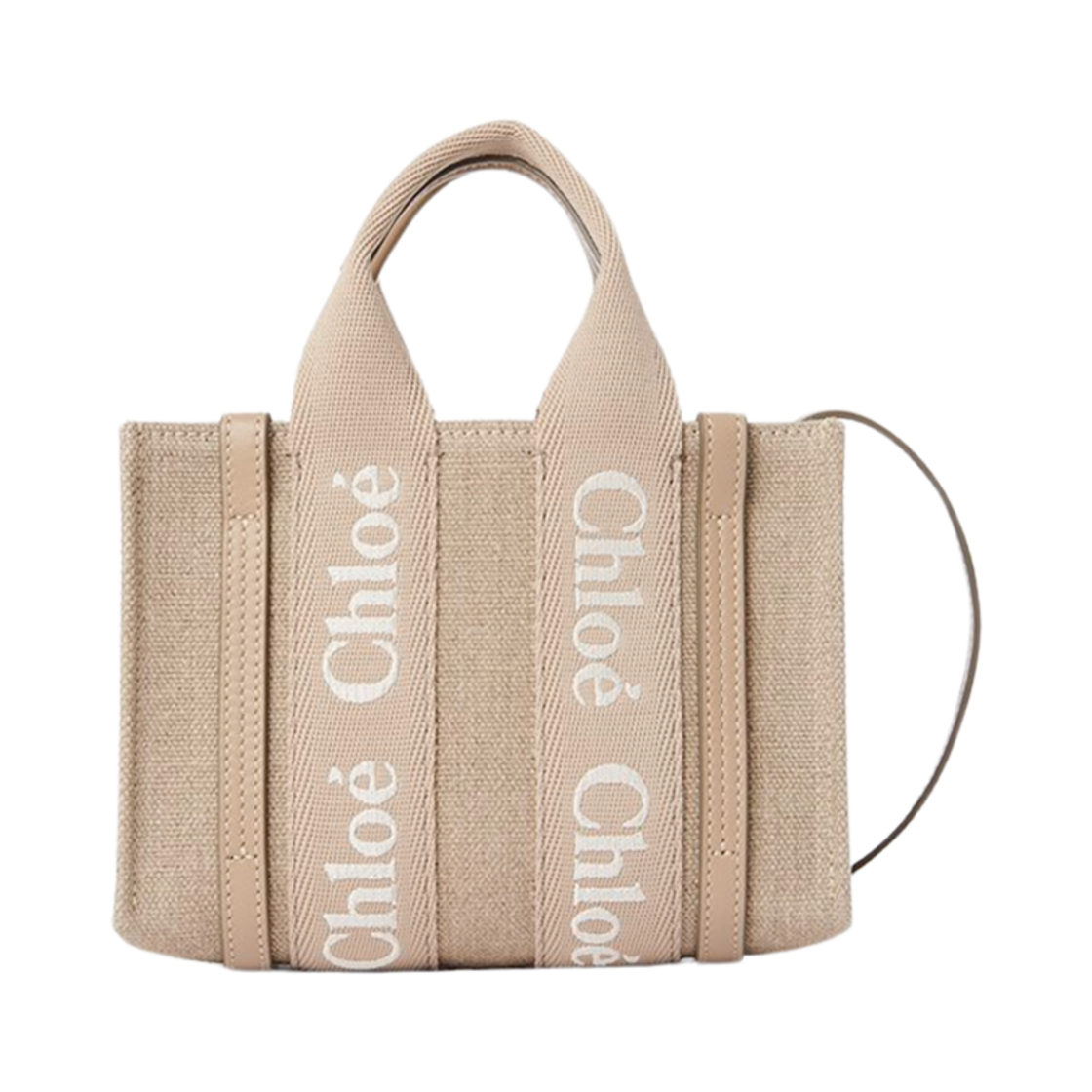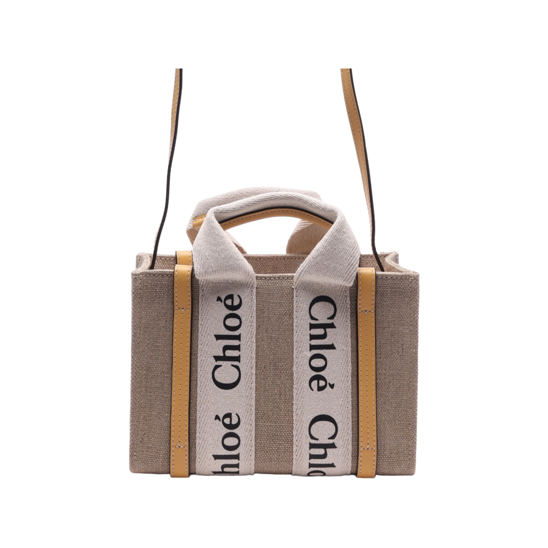 끌로에 린넨 우디 노스 사우스 미니 토트백 화이트 브라운