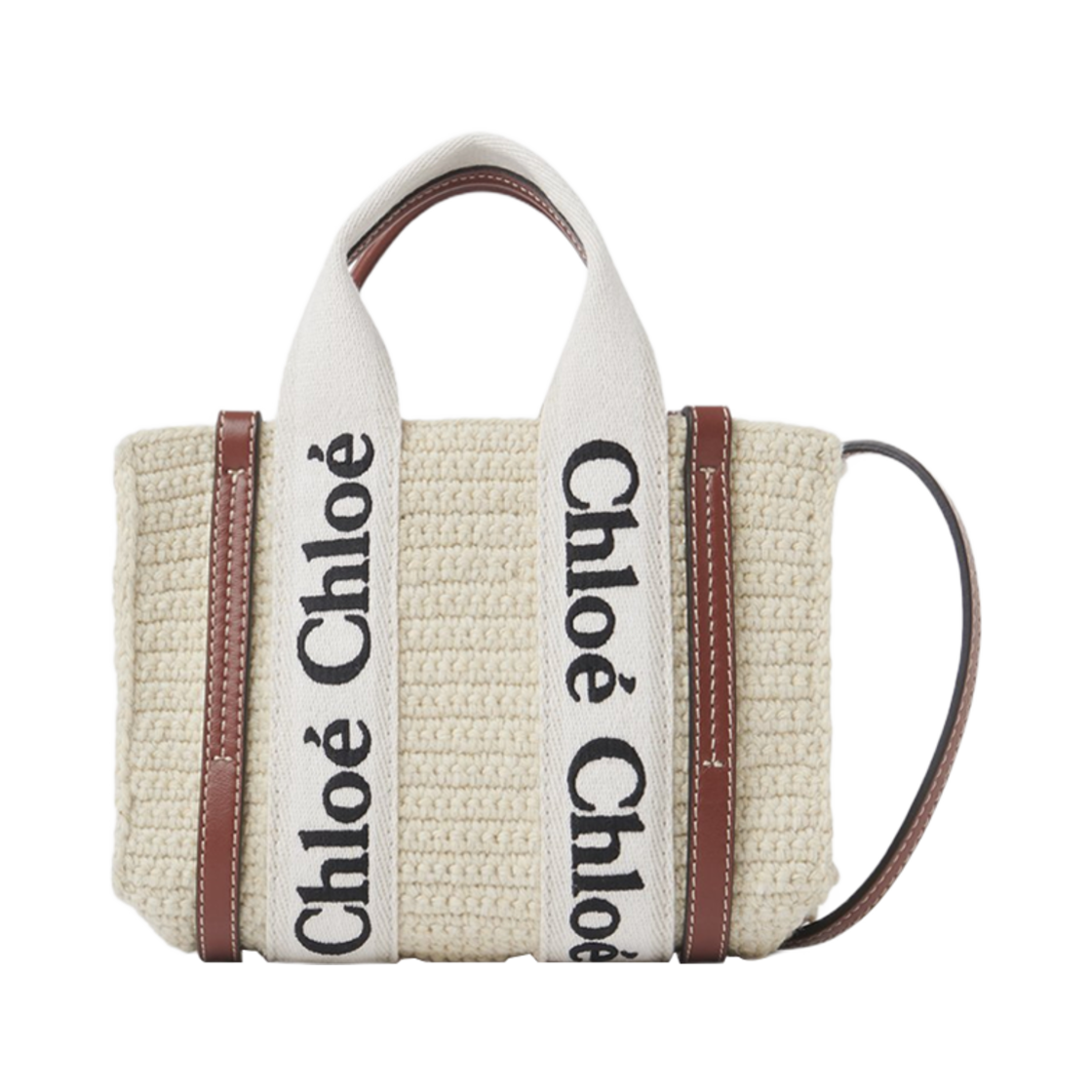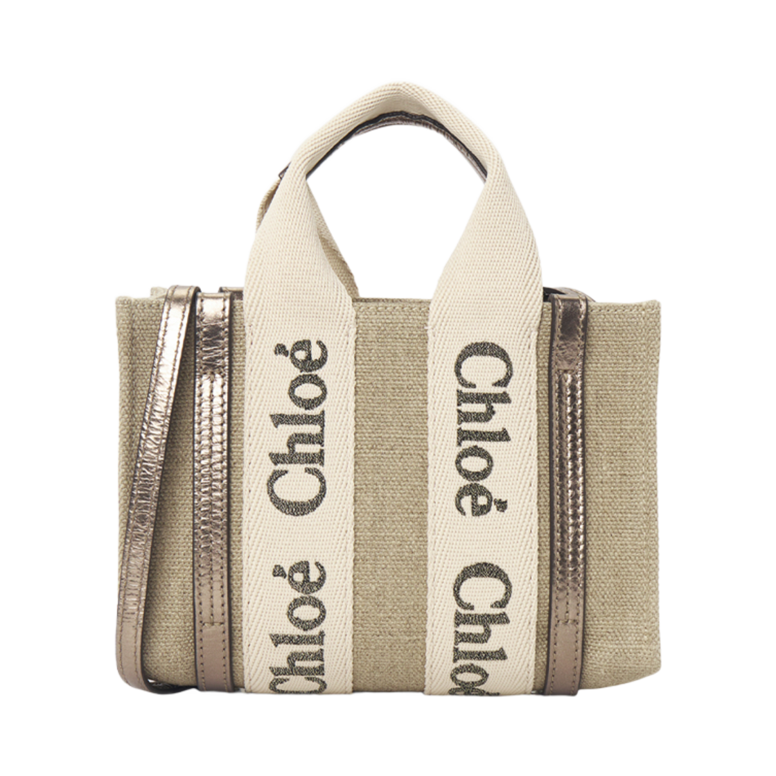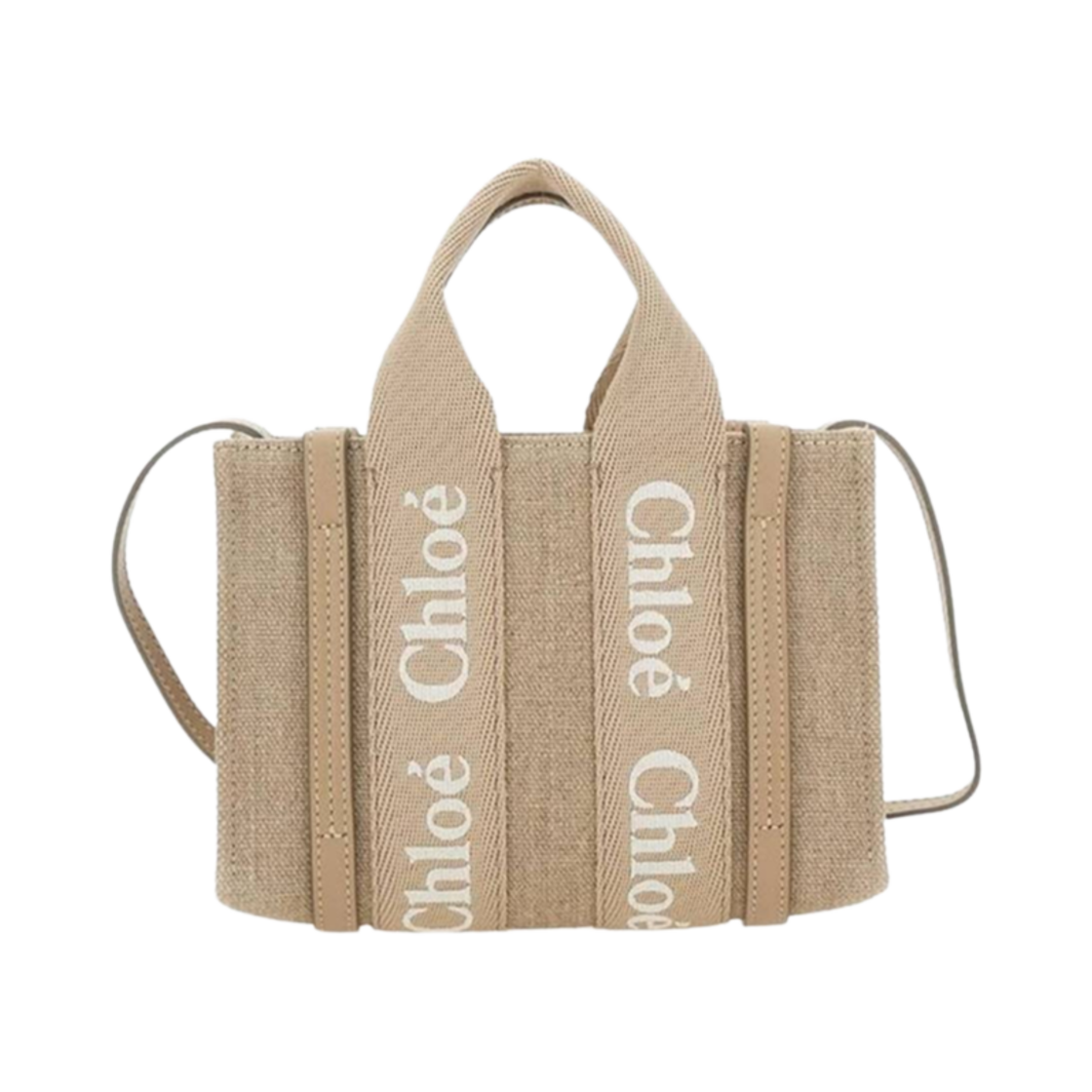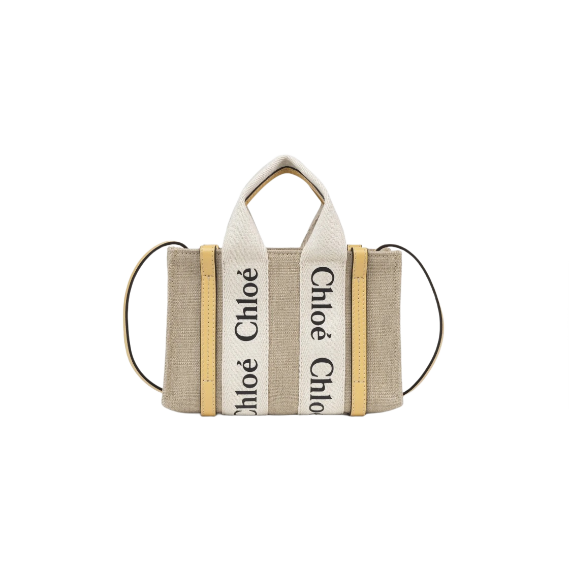 끌로에 린넨 우디 노스 사우스 미니 토트백 화이트 브라운