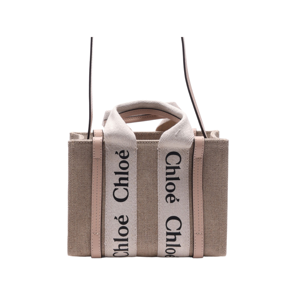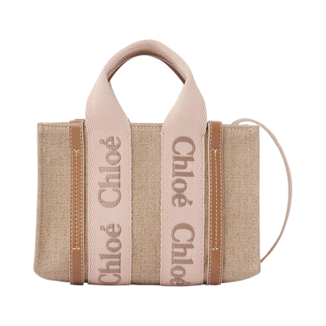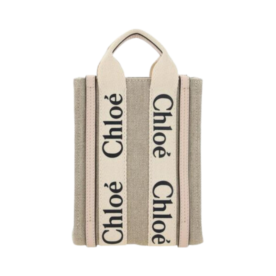 끌로에 린넨 우디 노스 사우스 미니 토트백 시멘트 핑크