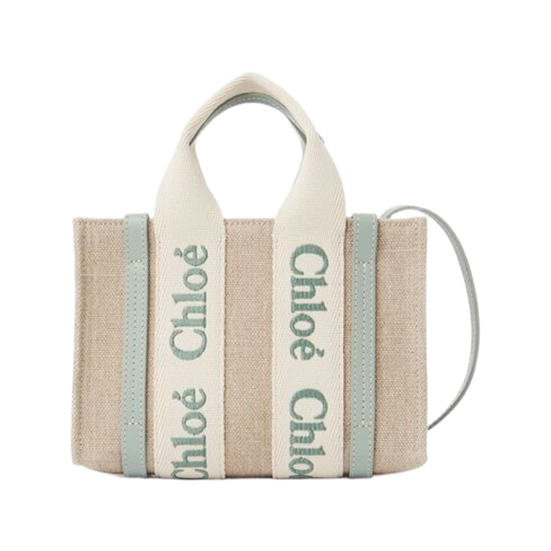 끌로에 린넨 레더 우디 미니 토트백 블루이쉬 그린