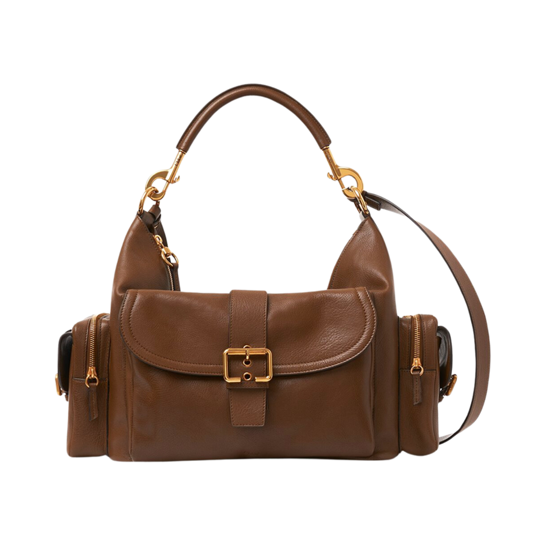 끌로에 샤이니 레더 카메라 백 클레이 브라운