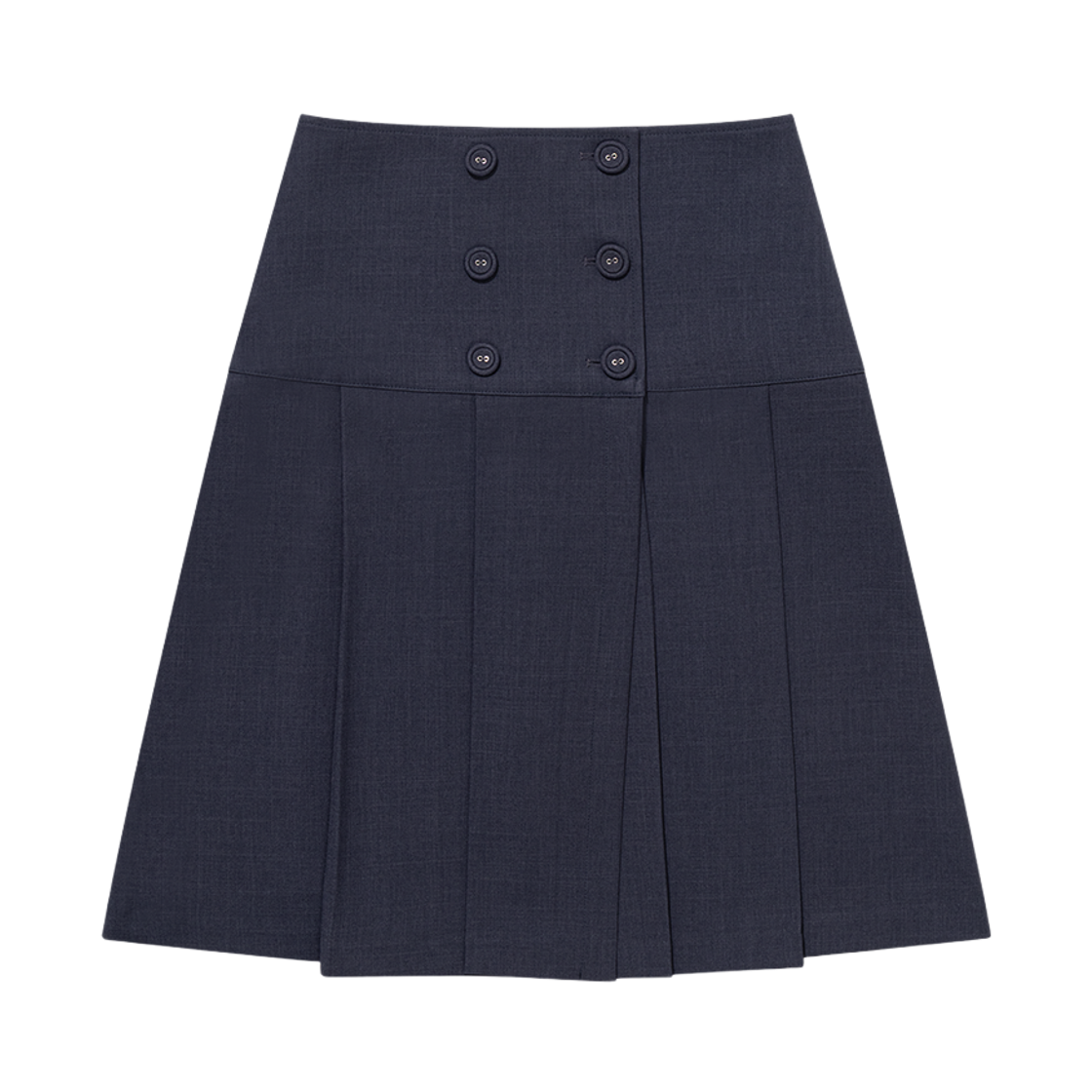 어글리쉐도우 버튼 더블 플리츠 미디 스커트 네이비