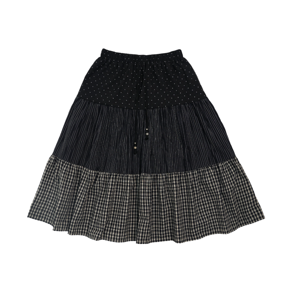 미헤브 쓰리패턴 셔링 빈티지 스커트 블랙