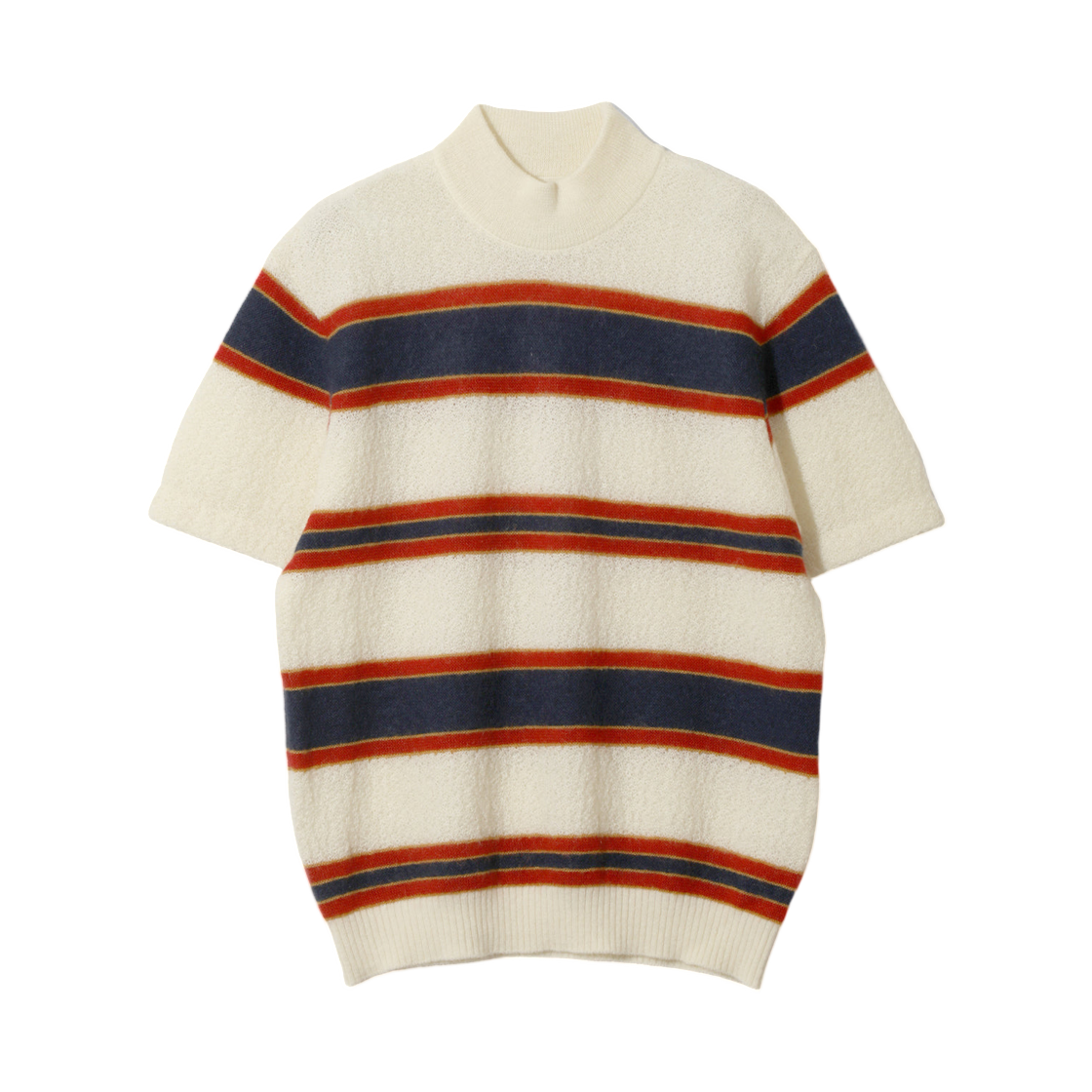 니들스 숏슬리브 목 넥 스웨터 크레이프 위브 스트라이프 아이보리