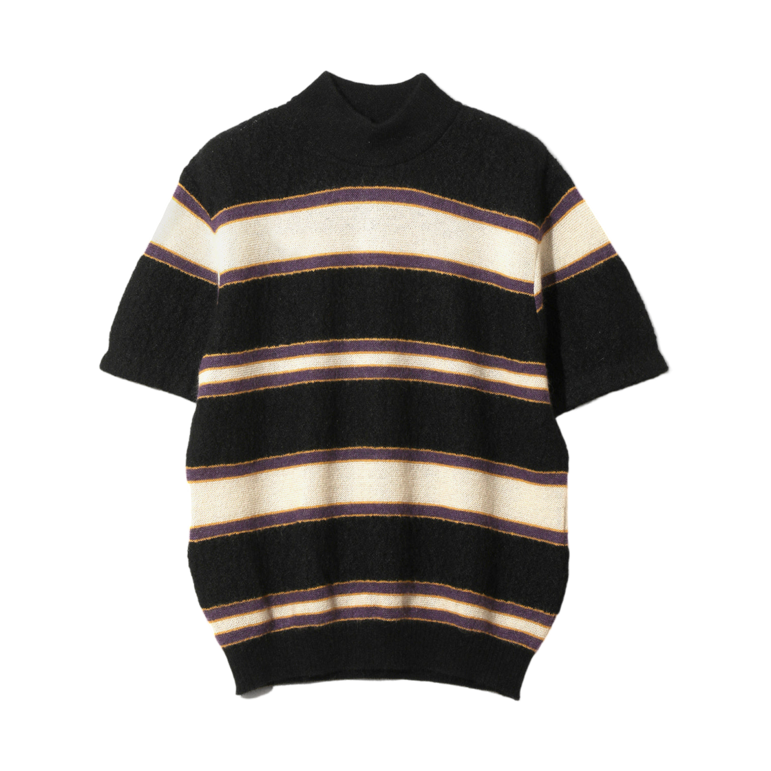 니들스 숏슬리브 목 넥 스웨터 크레이프 위브 스트라이프 블랙
