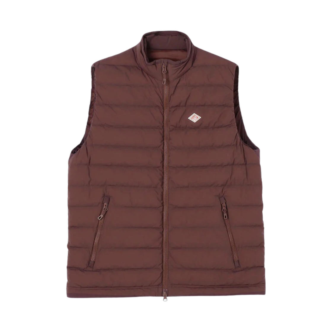 단톤 스트레치 나일론 미들 다운 스탠드 칼라 베스트 마룬 브라운