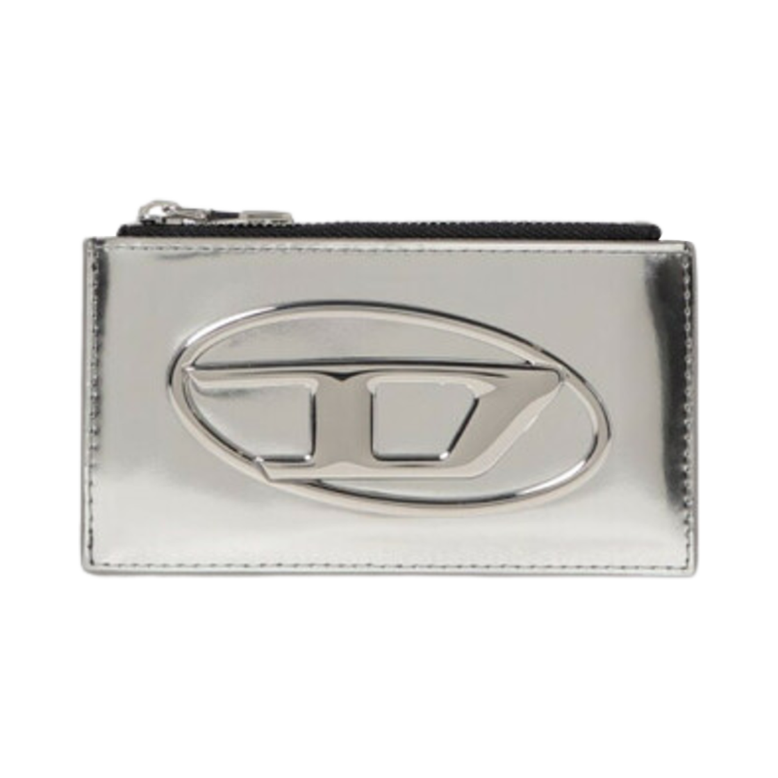 디젤 1DR 로고 메탈릭 지퍼 카드 홀더 실버
