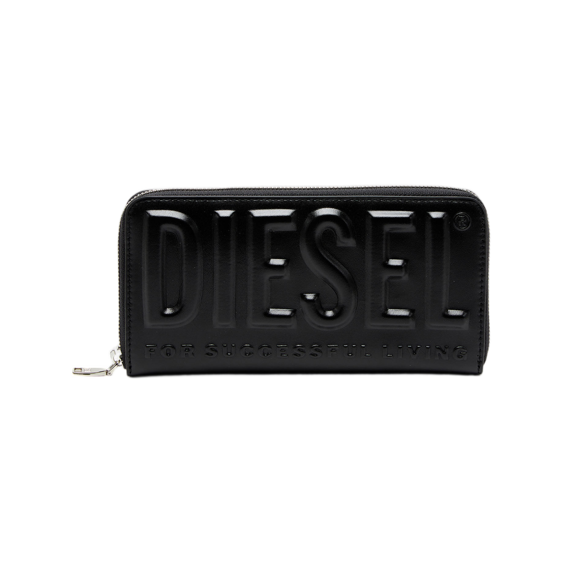 디젤 롱 집 월렛 로고 엠보스드 레더 블랙