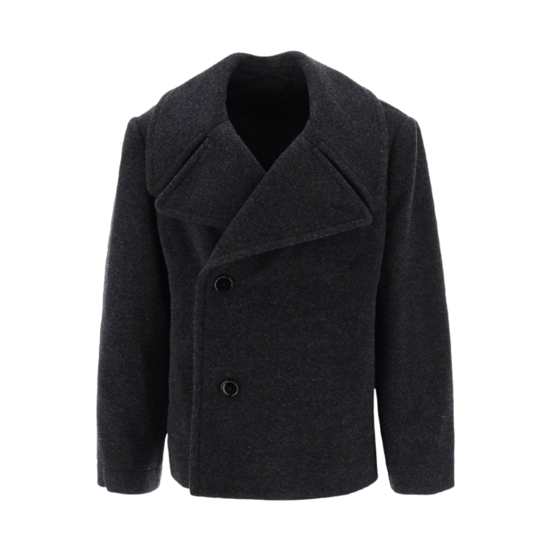 (W) 르메르 CH 소프트 버진 울 트윌 숏 맥시 더블 브레스티드 코트 앤트러사이트 그레이