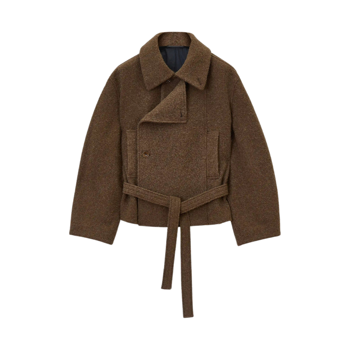 (W) 르메르 소프트 울 알파카 숏 어시메트리컬 배스로브 코트 브라운