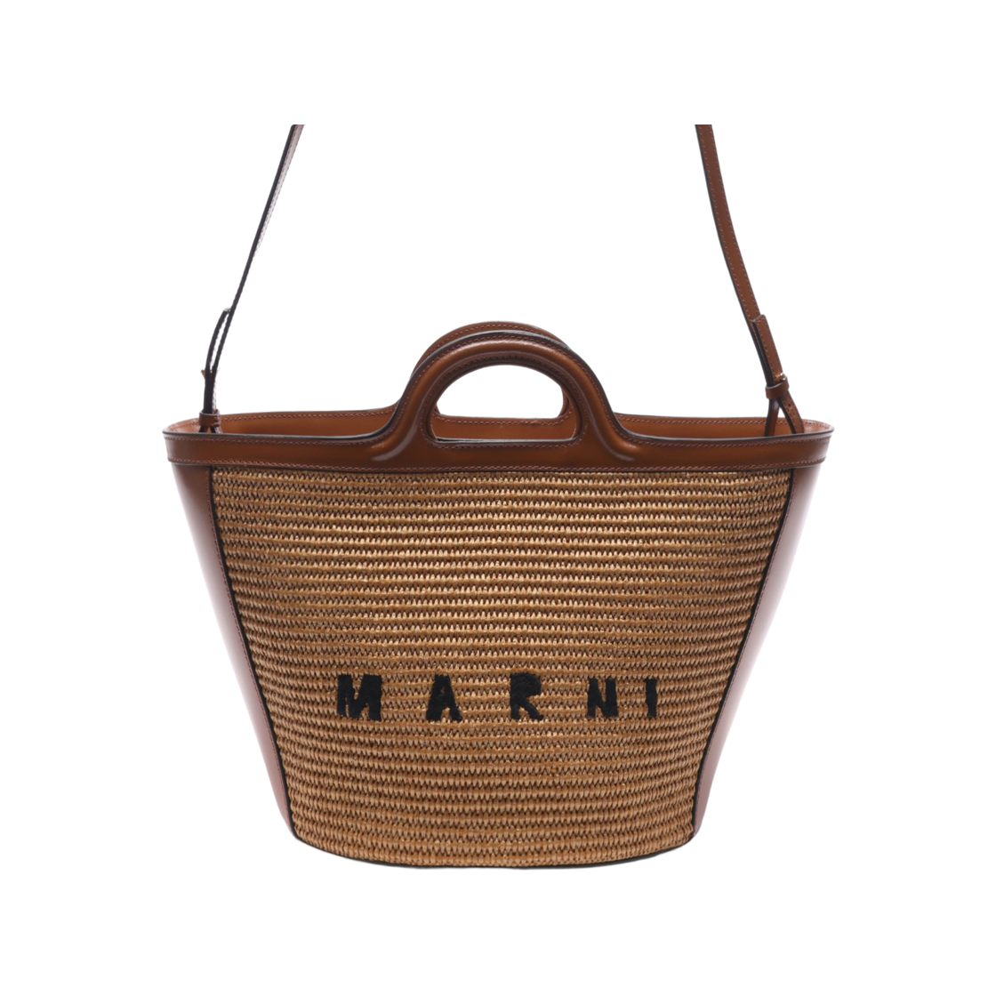 [20% 쿠폰] 마르니 레더 & 라피아 트로피칼리아 스몰백 로우 시에나