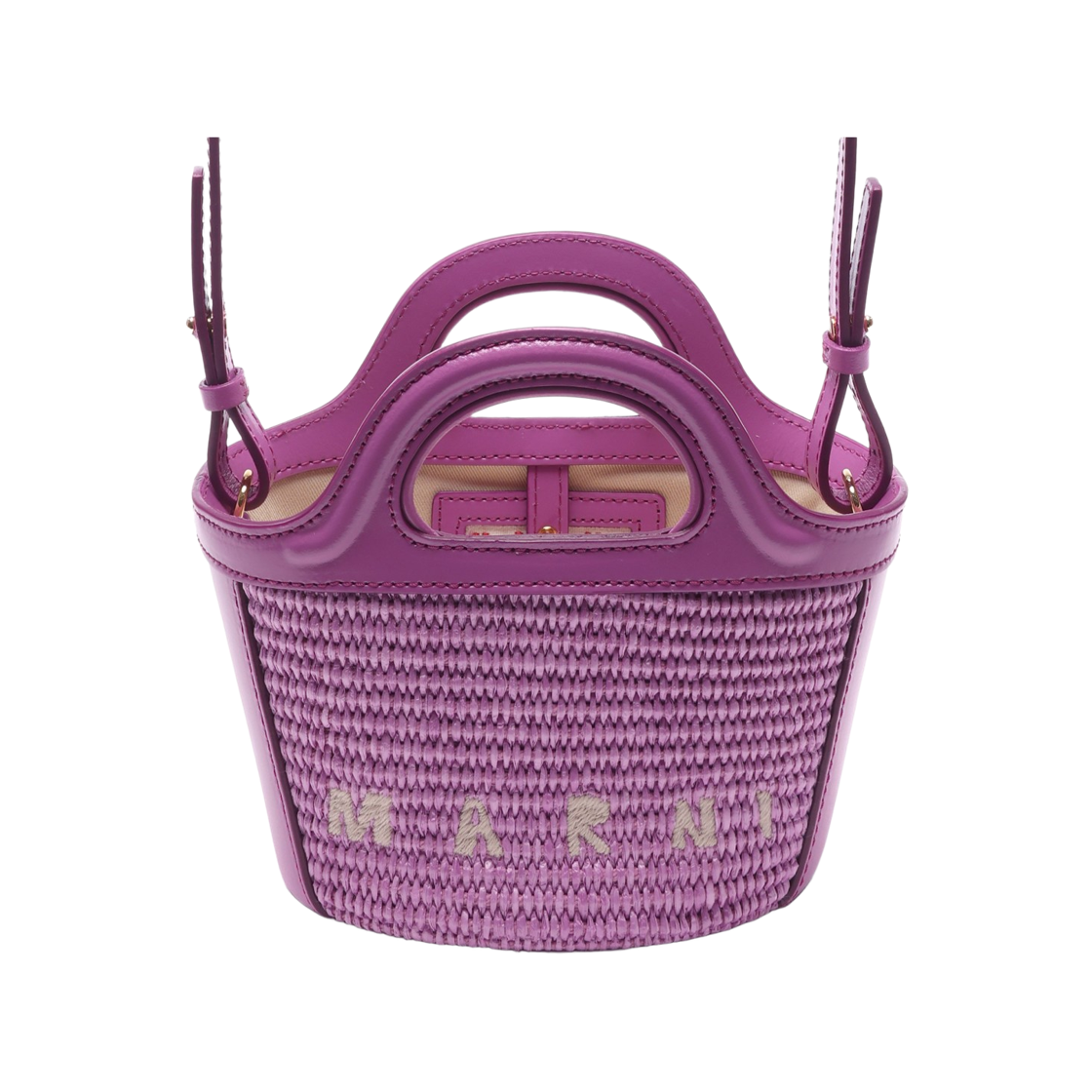 [20% 쿠폰] 마르니 레더 & 라피아 트로피컬리아 마이크로백 라이트 라일락