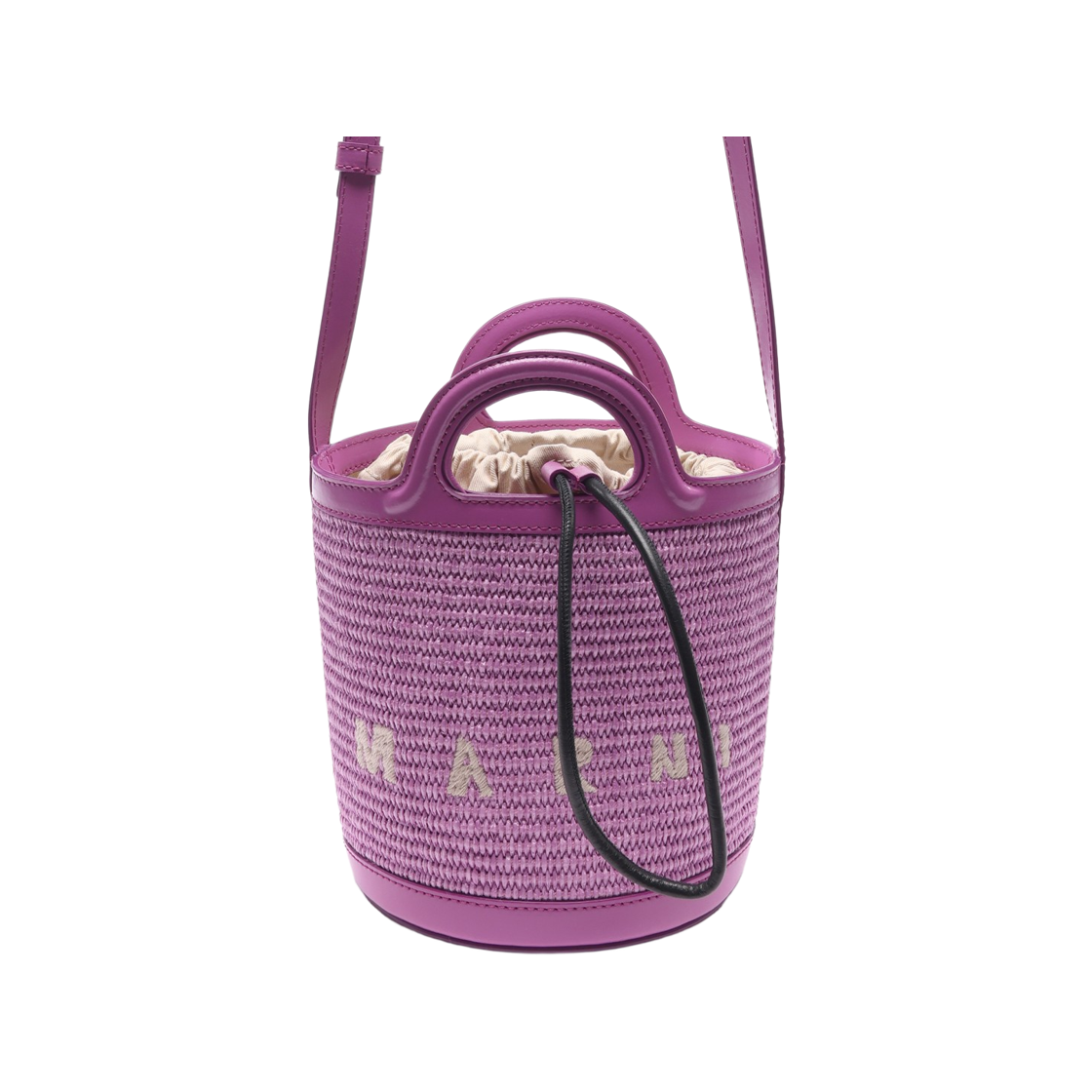 [20% 쿠폰] 마르니 레더 & 라피아 트로피칼리아 스몰 버킷백 라이트 라일락