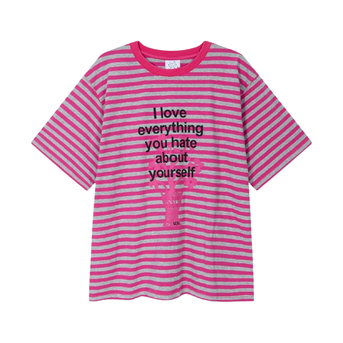 모스키토 머더러스 아이러브 에브리띵 유 헤이트 어바웃 유어셀프 티셔츠 핑크 그레이