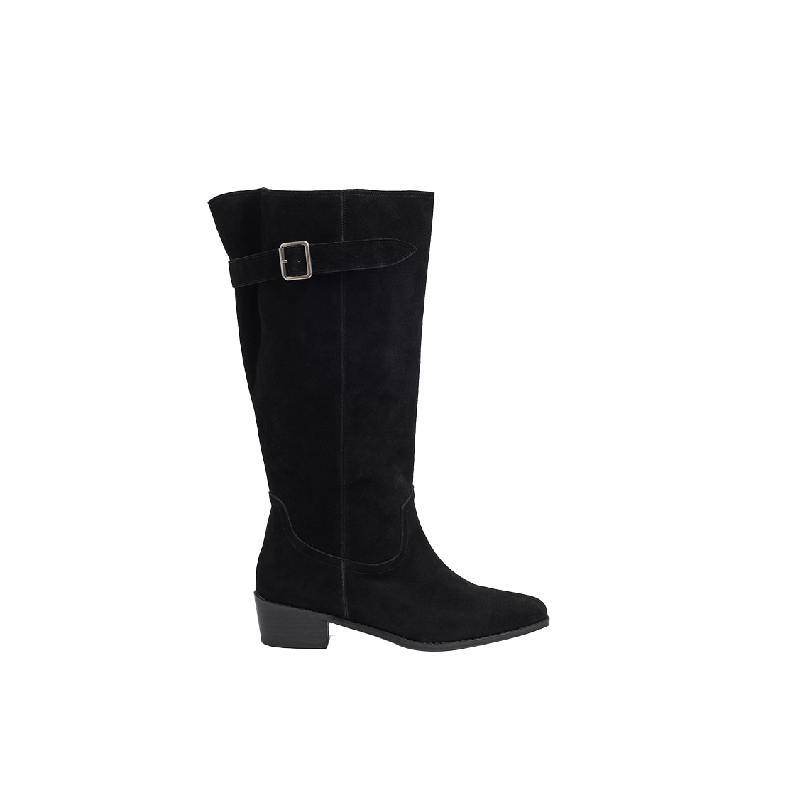 무드나잇 마사 실루엣 스판 니하이부츠 l 스웨이드블랙