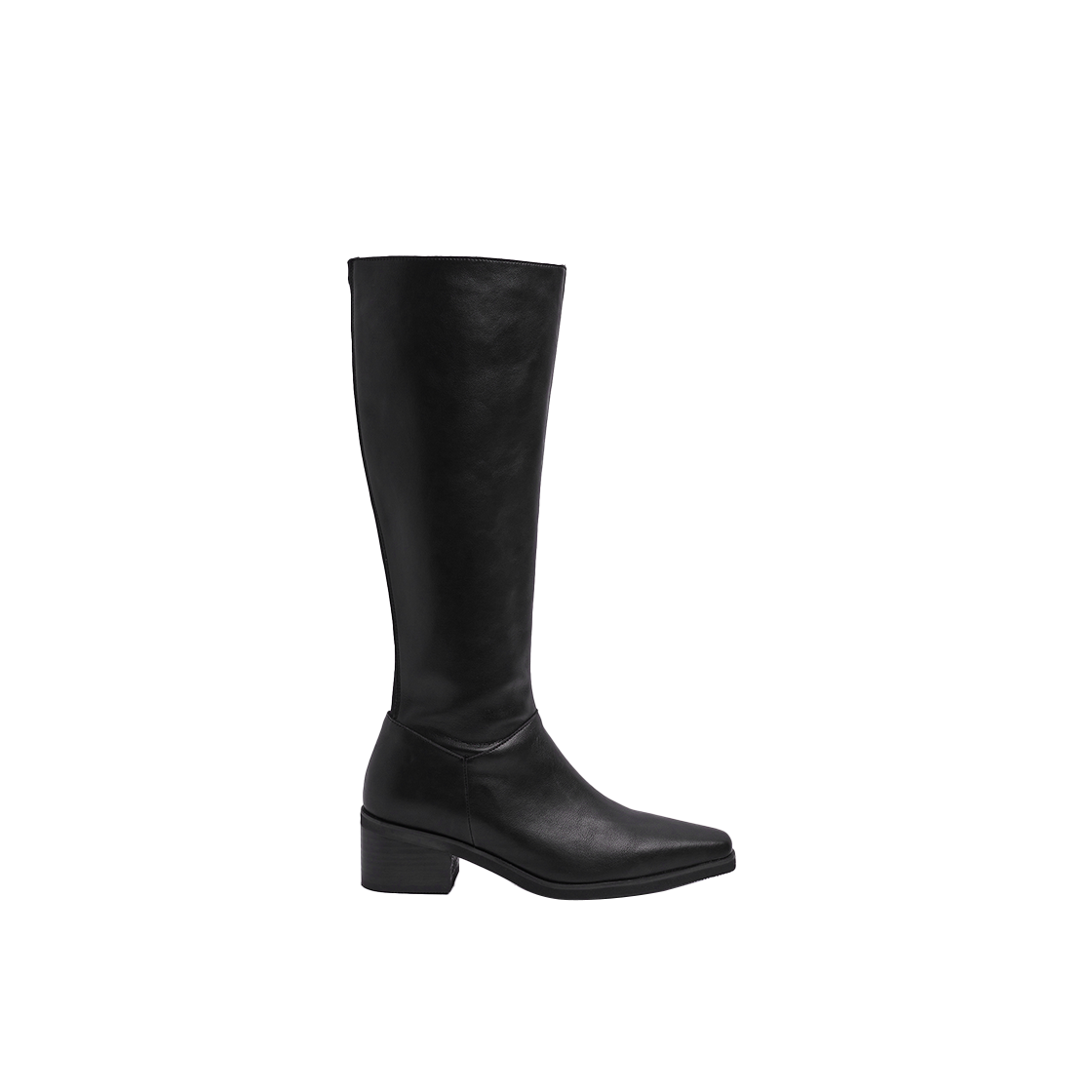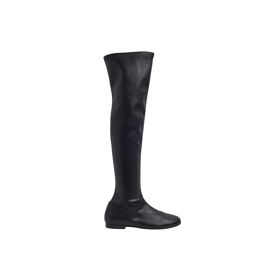 무드나잇 마사 실루엣 스판 니하이부츠 l 레더블랙