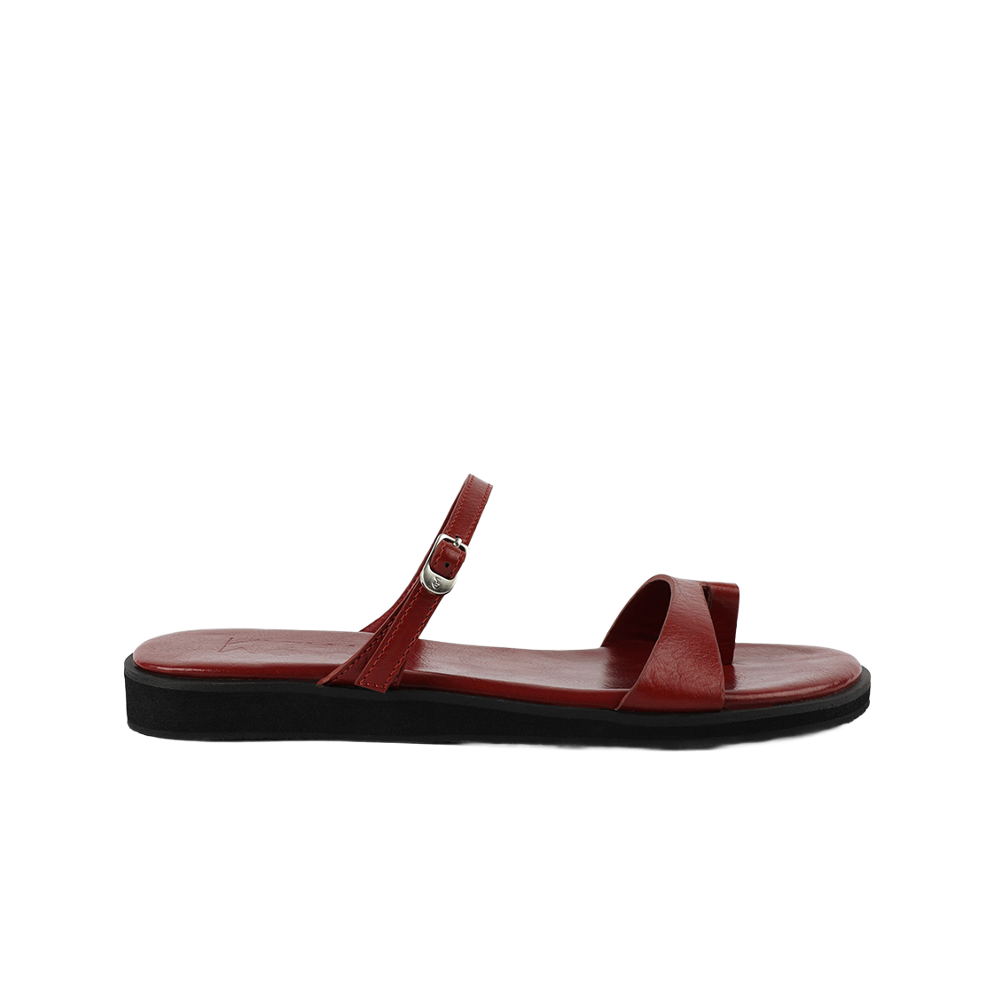 무드나잇 엘리아 X스트랩 스틸레토 플랫 l 레더블랙