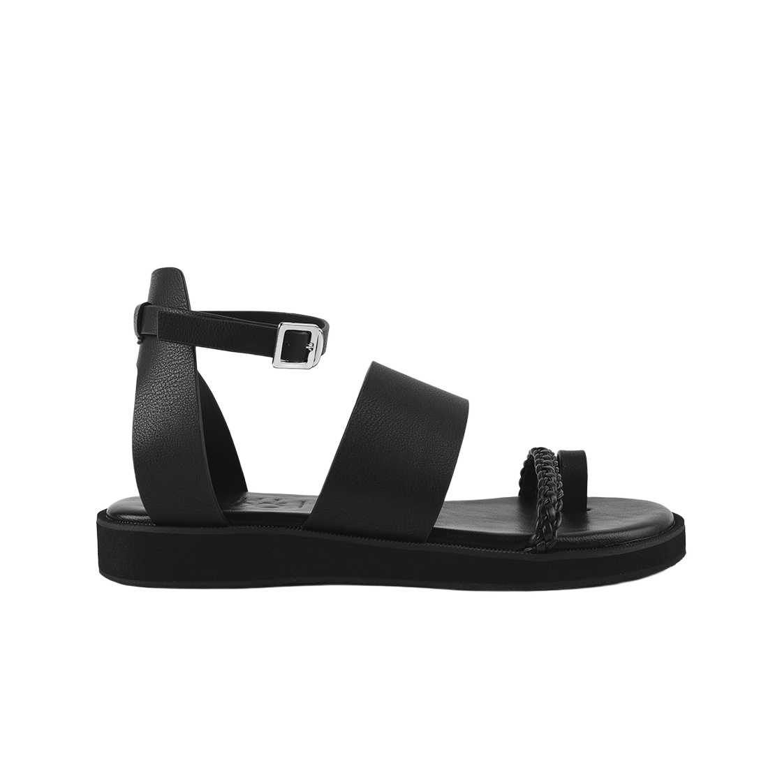 무드나잇 포레스트 티스트랩 플랫 샌들 블랙