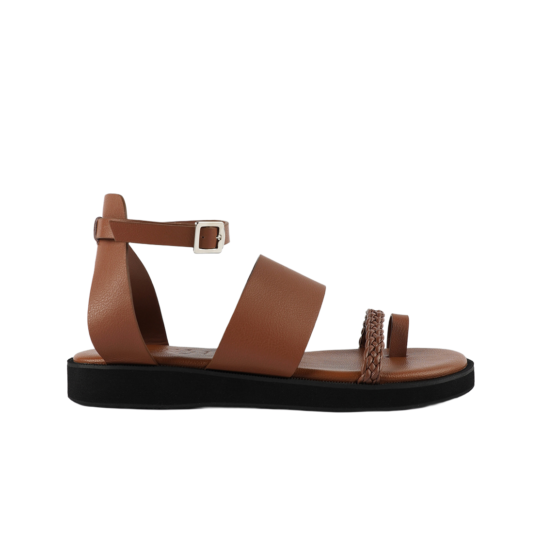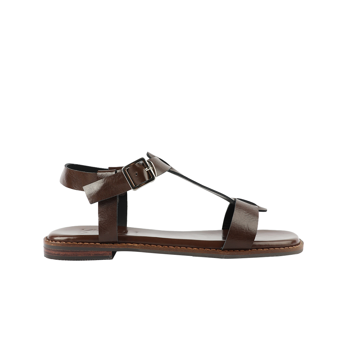 무드나잇 포레스트 티스트랩 플랫 샌들 브라운