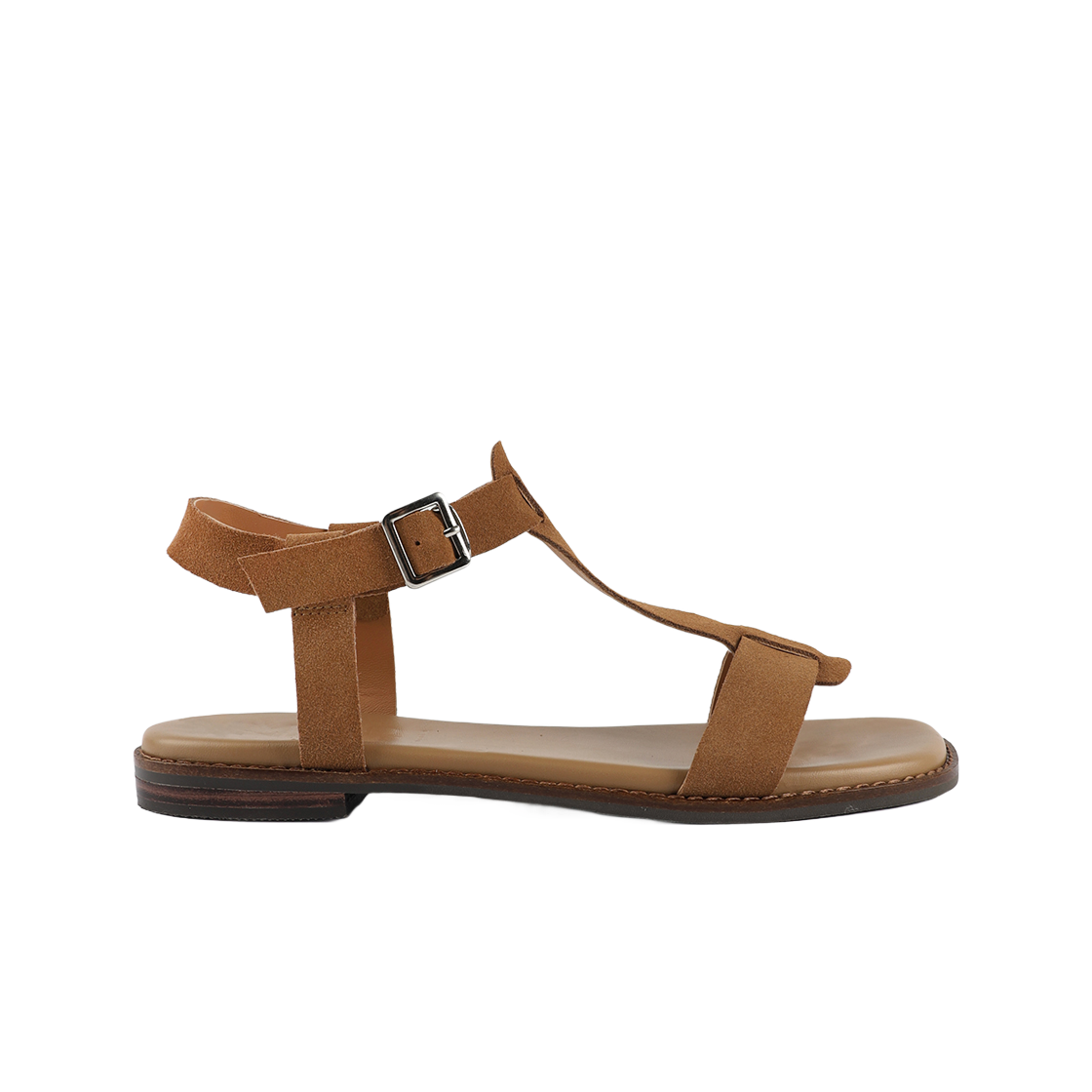 무드나잇 포레스트 티스트랩 플랫 샌들 카멜스웨이드