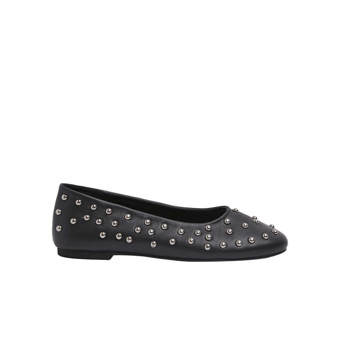 무드나잇 줄스 스터드 플랫슈즈 l 레더블랙