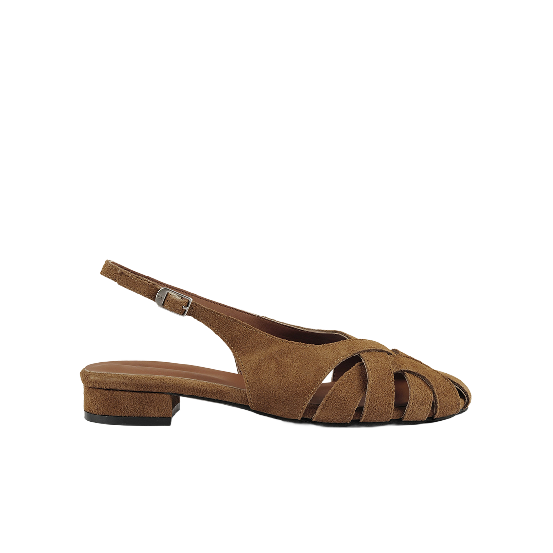 무드나잇 랜디 커브 슬링백 플랫슈즈 l 카멜스웨이드