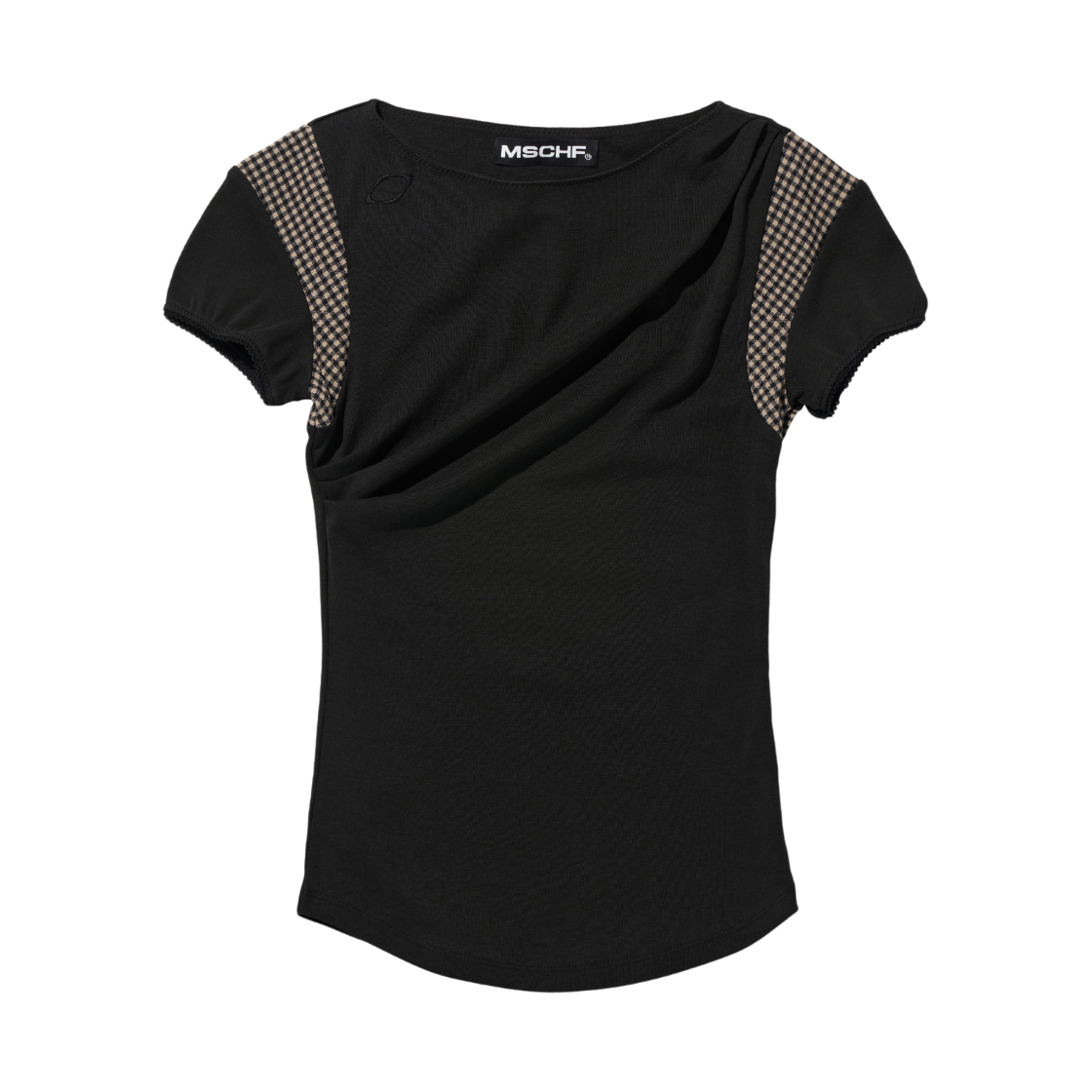 (W) 미스치프 카울 체크 블록 탑 블랙
