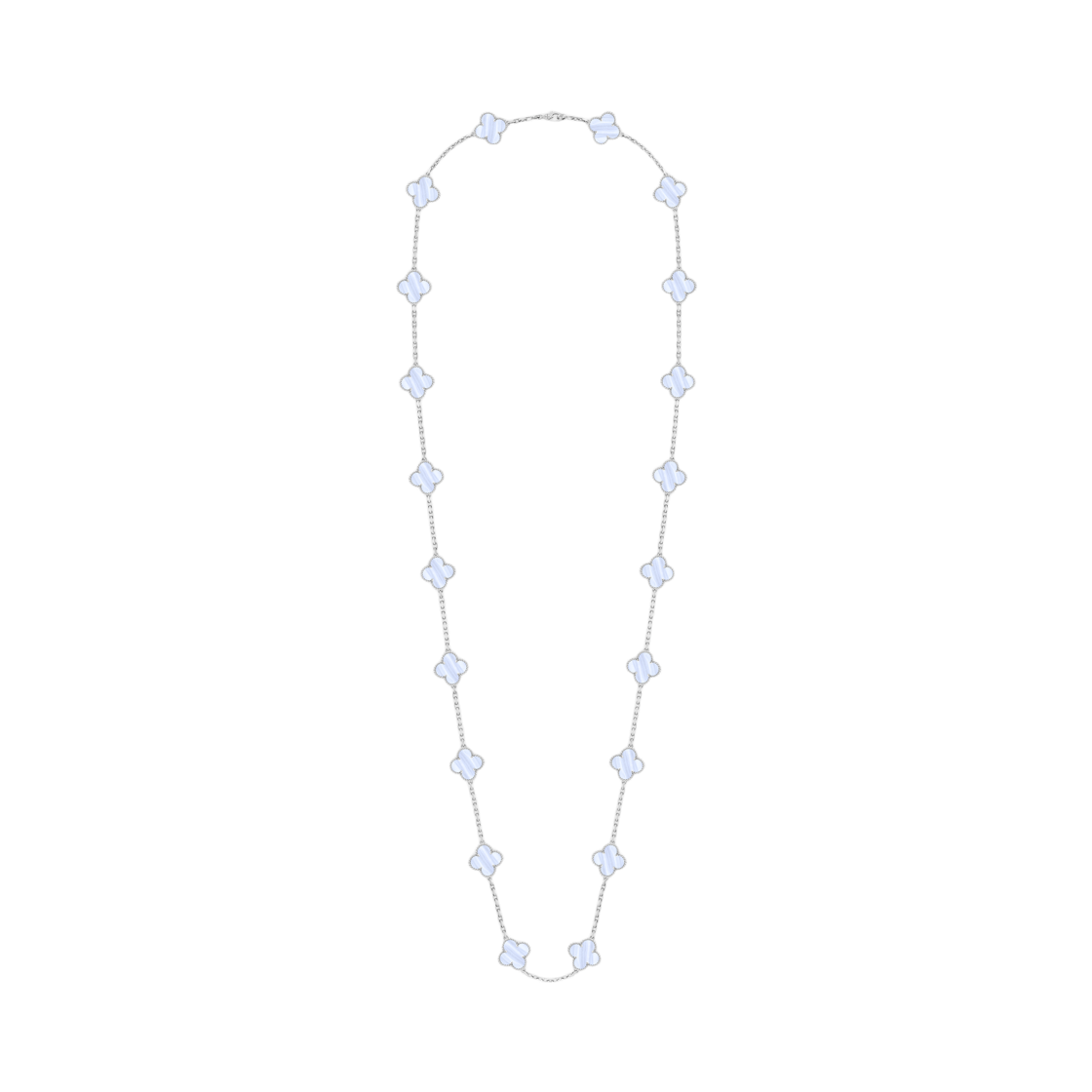 (W) 반 클리프 & 아펠 빈티지 알함브라 롱 네크리스 20 모티브 18K 화이트 골드 칼세도니