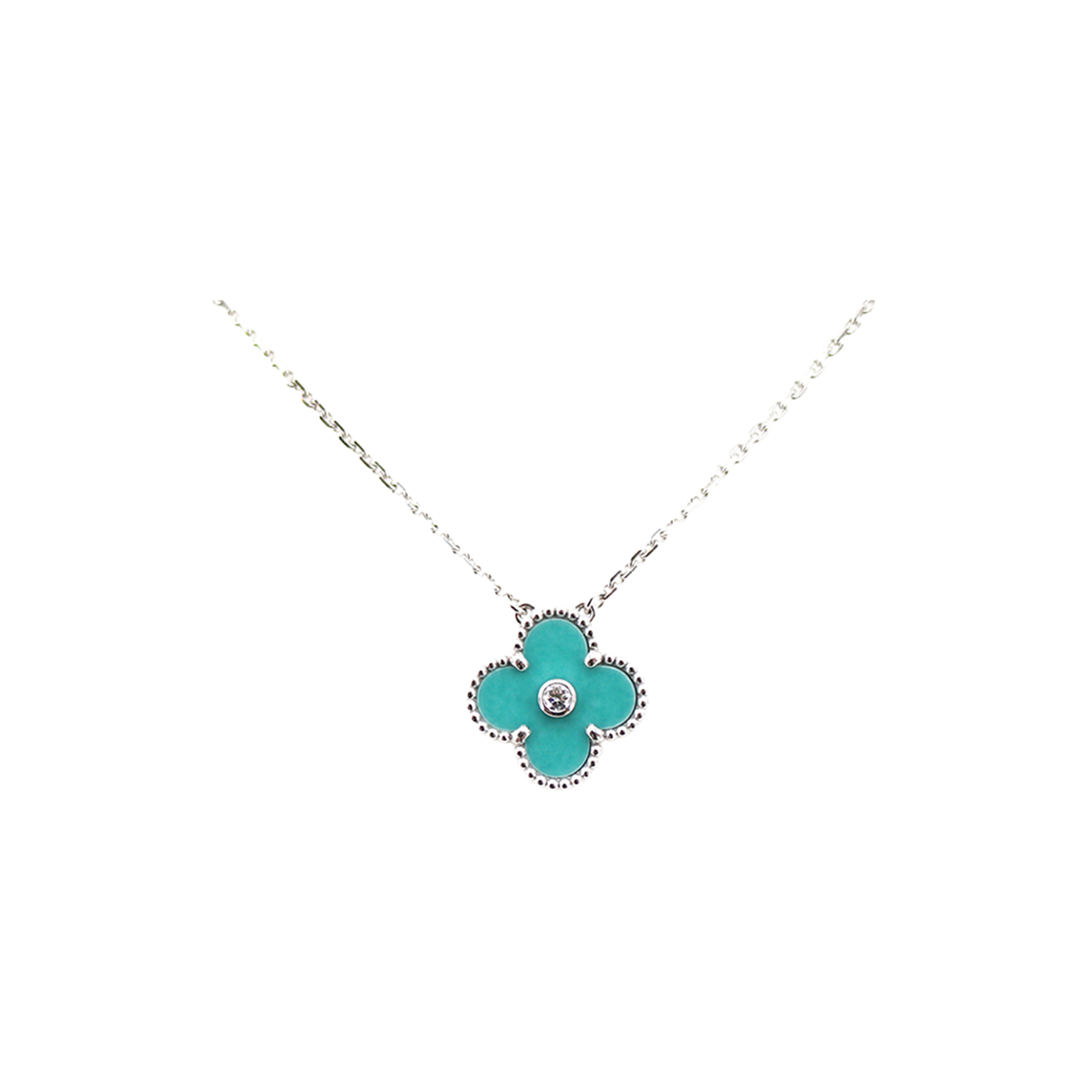 (W) 반 클리프 & 아펠 빈티지 알함브라 펜던트 화이트 골드 칼세도니