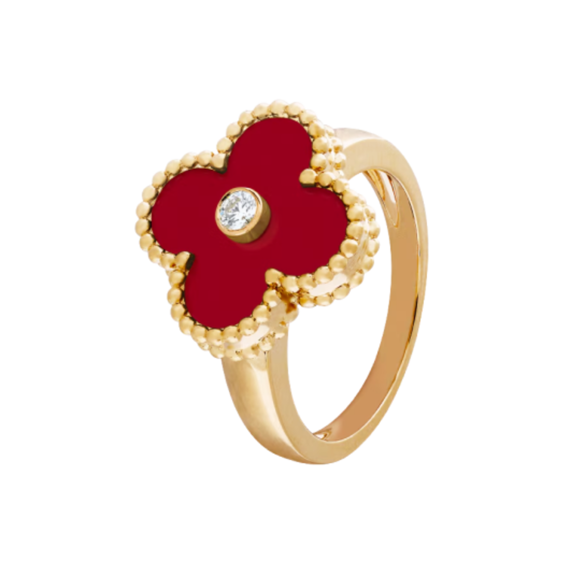 반 클리프 & 아펠 빈티지 알함브라 링 18K 옐로우 골드 커넬리언 다이아몬드