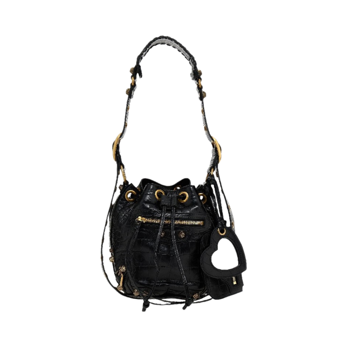 발렌시아가 르 카골 XS 버킷백 크로커다일 엠보스드 블랙