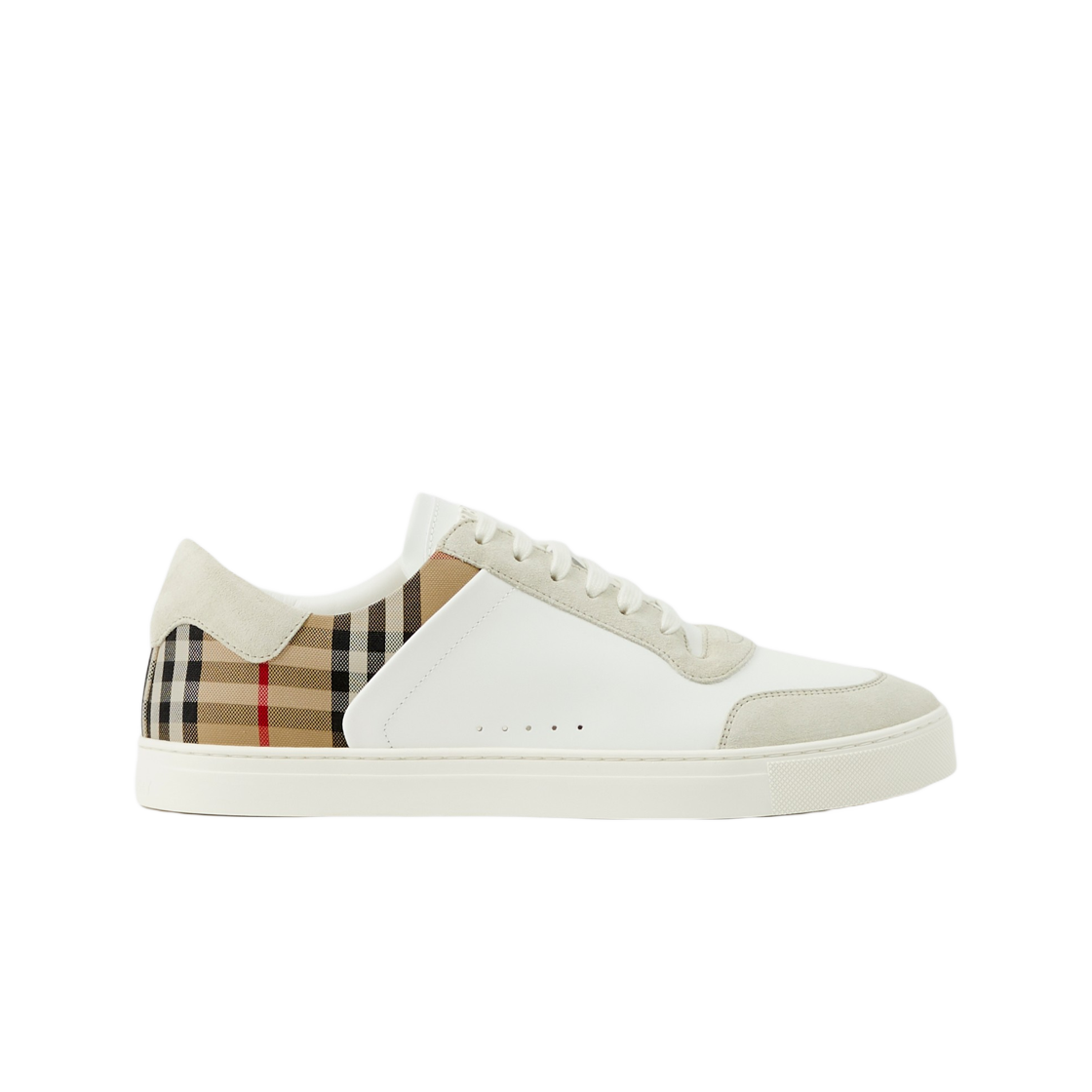 버버리 레더 스웨이드 앤 체크 스니커즈 내츄럴 화이트 아카이브 베이지
