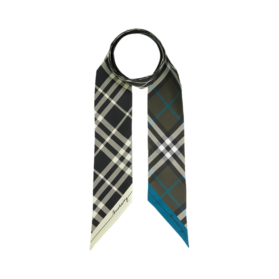 (W) 버버리 체크 실크 스키니 스카프 블루