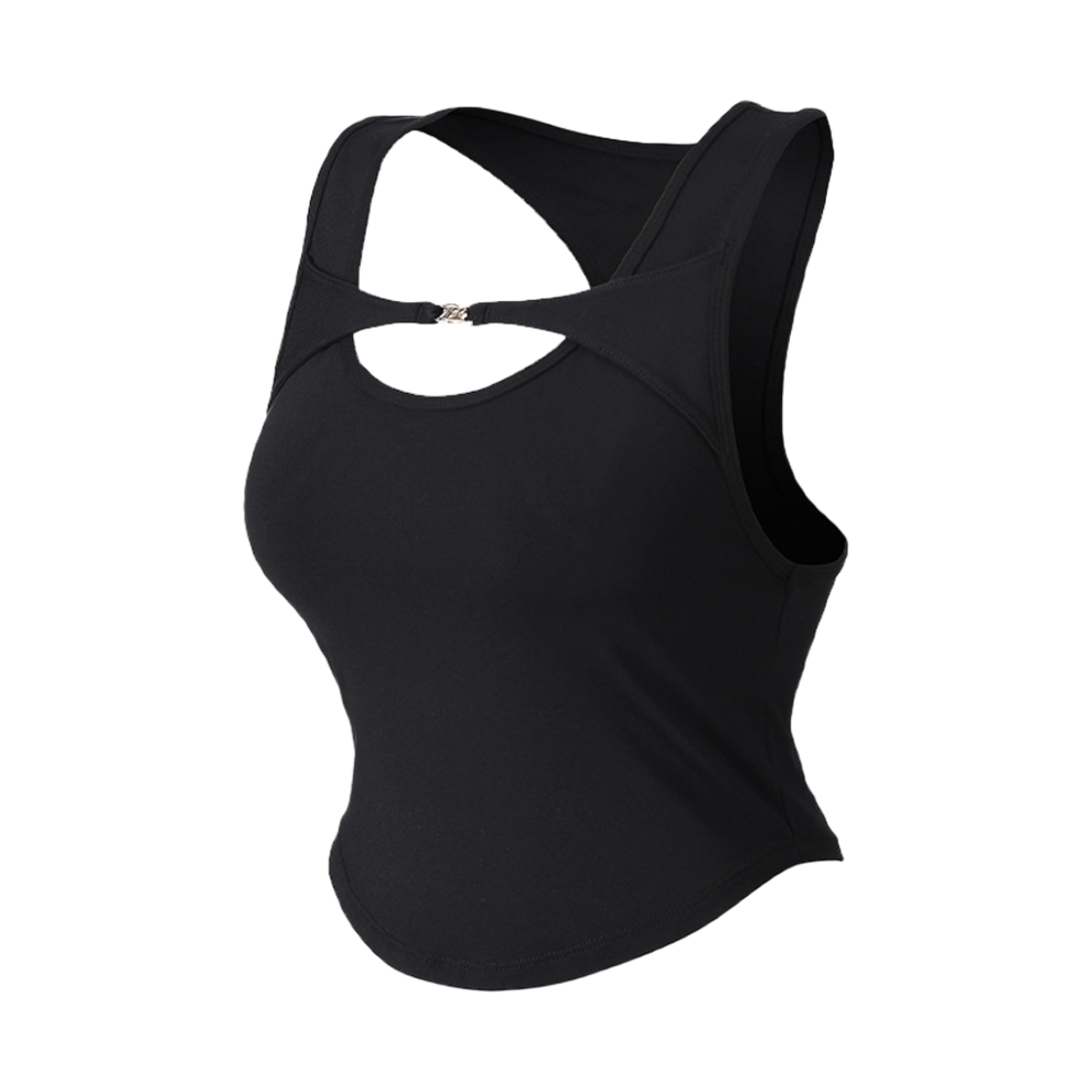 본투윈 B 버클 컷아웃 크롭 슬리브리스 블랙