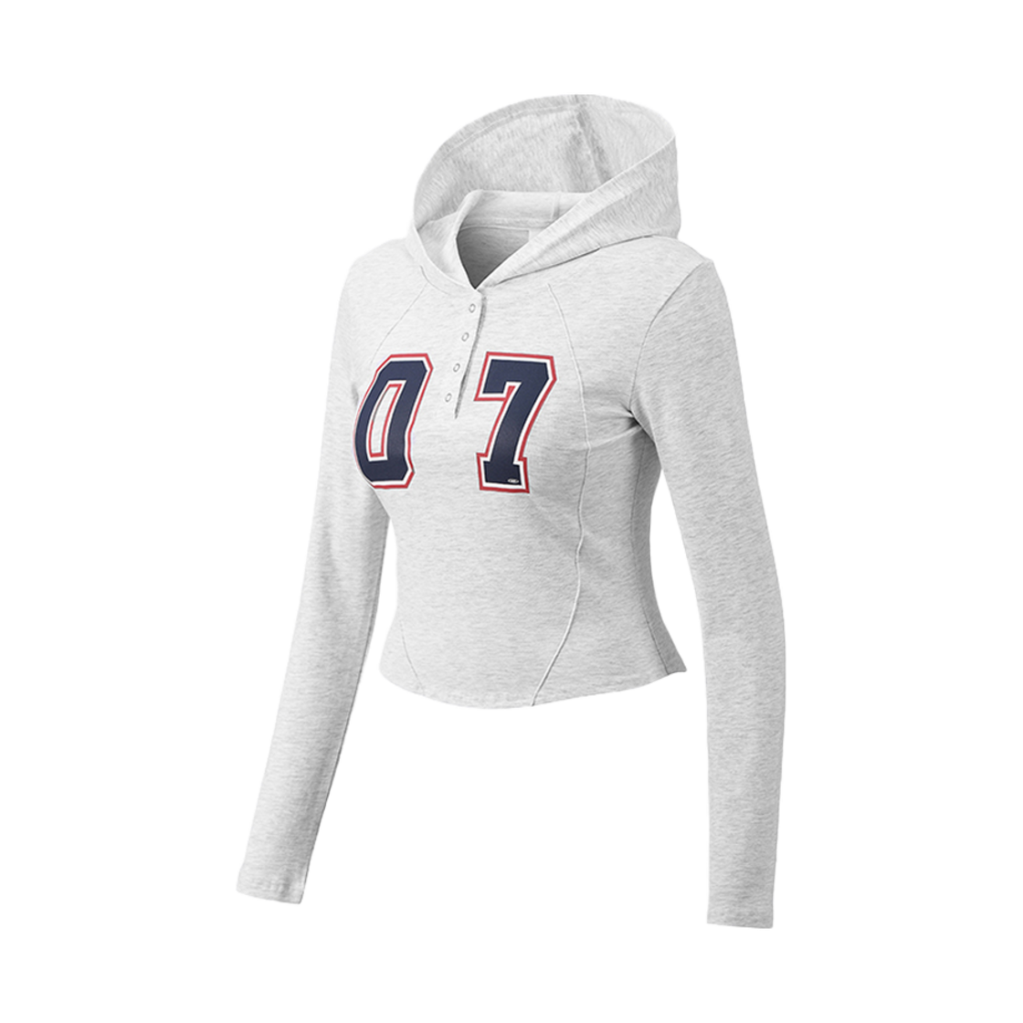 본투윈 우먼스 넘버 핀턱 스냅 후디 화이트 멜란지 그레이